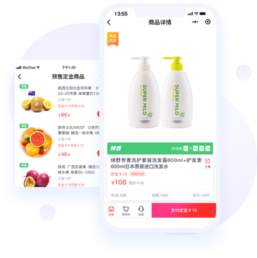 定金预售提前锁定有效流量,促进用户高效转化,长期营销吸客,增加店铺销额。