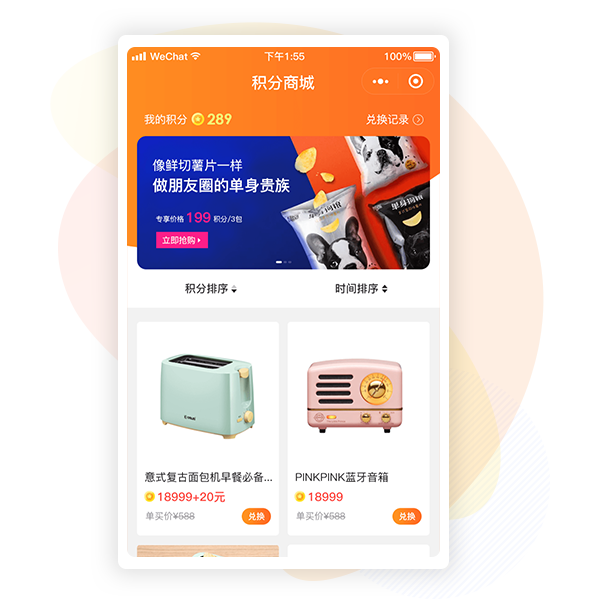 自由设置商品兑换方式纯积分、积分+付费两种购买方式自由添加,提升兑换体验,促进用户留存。