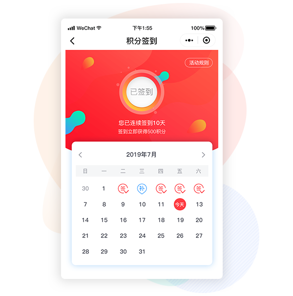 特侧补签设置用户消耗积分可进行活动补签,增加可玩性,延展用户签到积极性。