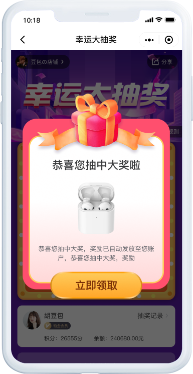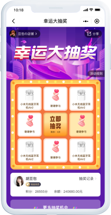 自带裂变属性的抽奖应用,丰富的功能设置和便捷的操作体验,迅速引爆朋友圈。